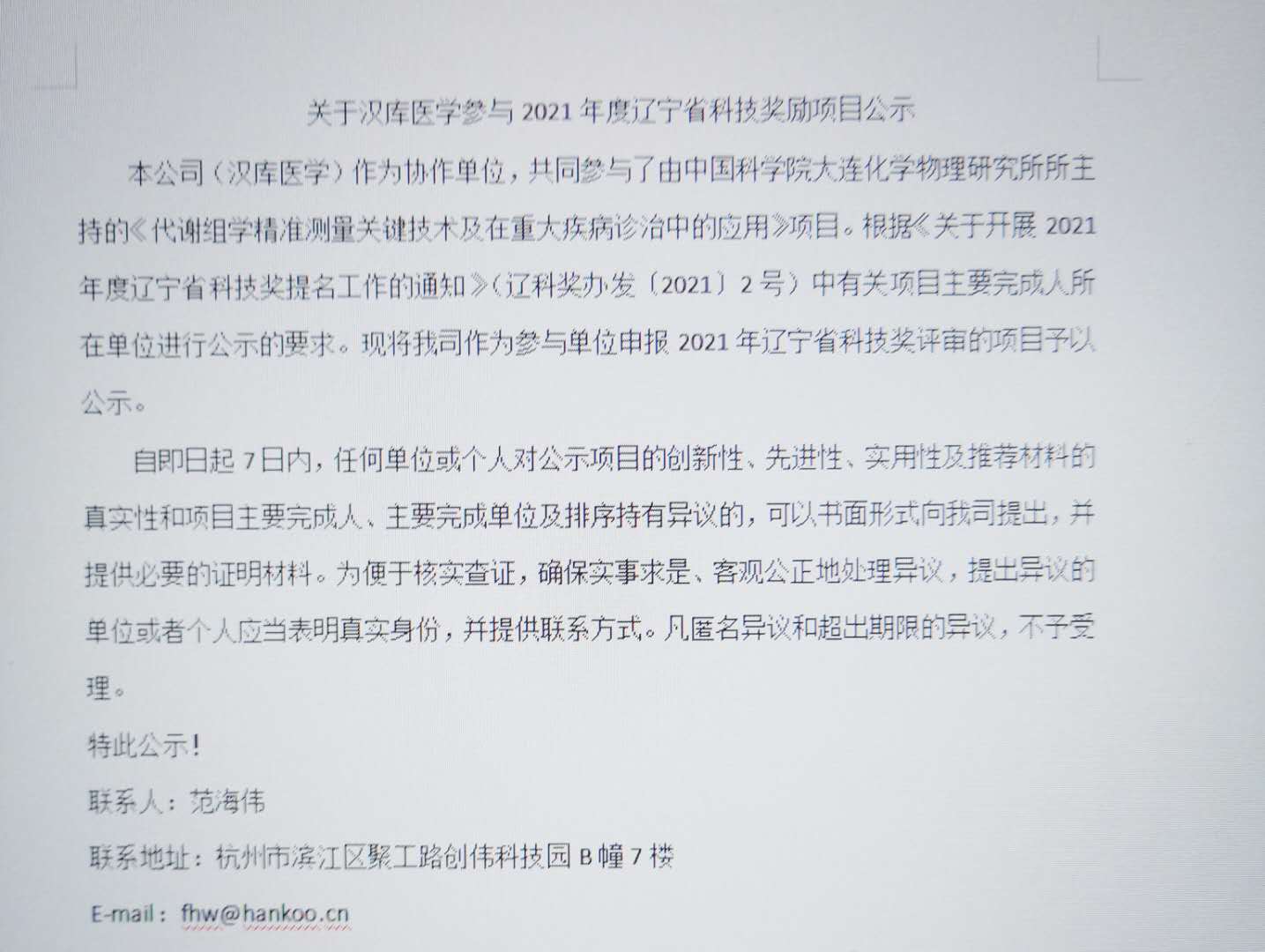 關(guān)于漢庫(kù)醫(yī)學(xué)參與2021年度遼寧省科技獎(jiǎng)勵(lì)項(xiàng)目公示2021-07-05