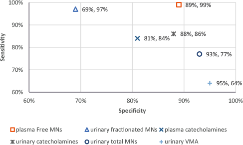 同時,腫瘤兒茶酚胺釋放入血呈“間歇性”,直接檢測兒茶酚胺易出現(xiàn)假陰性,而兒茶酚胺在細胞內(nèi)的代謝呈持續(xù)性,其中間產(chǎn)物甲氧基腎上腺類物質(zhì)(MNs)持續(xù)釋放入血,檢測MNs可以提高檢測靈敏度。