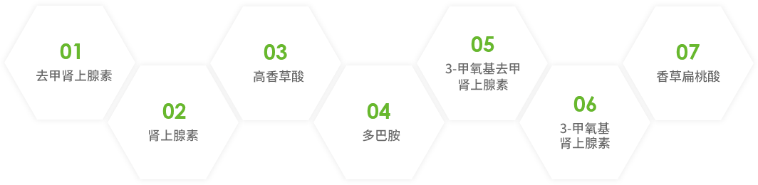 兒茶酚胺(CA)是一種含有兒茶酚和胺基的神經(jīng)類物質(zhì),主要由腎上腺髓質(zhì)合成分泌,包括腎上腺素、去甲腎上腺素、多巴胺等多種物質(zhì)。兒茶酚胺能使心臟興奮,心率加快,血壓的收縮壓增高,外周血流量增加。