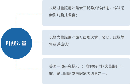 葉酸又稱維生素B9,是細(xì)胞內(nèi)一碳單元轉(zhuǎn)移酶系統(tǒng)中的輔酶或載體,為機(jī)體細(xì)胞生長和繁殖必需的物質(zhì),參與DNA的合成及相關(guān)功能蛋白的甲基化修飾過程,是胚胎發(fā)育過程中必不可少的營養(yǎng)素。近年來大量研究已經(jīng)證實(shí),葉酸缺乏是導(dǎo)致嬰兒出生缺陷的主要原因之一。同時(shí),葉酸的缺乏也會(huì)對(duì)孕婦自身產(chǎn)生嚴(yán)重的危害;而另一方面,長期過量的服用也會(huì)給人體帶來嚴(yán)重的負(fù)面影響。