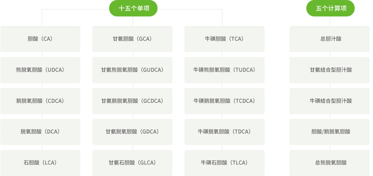膽汁酸的代謝包括了肝臟的合成,膽囊的儲(chǔ)存和釋放,腸道微生物的代謝以及腸肝循環(huán)等復(fù)雜過程,且各膽汁酸亞成分結(jié)構(gòu)和功能都不盡相同,而目前臨床上只有總膽汁酸這單一指標(biāo),往往就遺漏了許多信息。采用LC-MS/MS技術(shù)平臺(tái)實(shí)現(xiàn)對(duì)膽汁酸譜的檢測對(duì)于探索膽汁酸在各種疾病中的病因?qū)W、發(fā)病機(jī)理中所發(fā)揮的作用,挖掘其在疾病診斷、治療及預(yù)后過程中的重要價(jià)值具有重要意義。